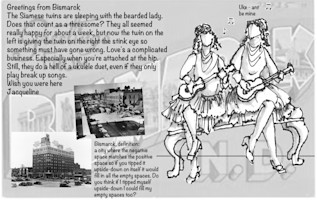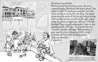 Wish You Were Here is a series of post cards inspired by my attempt to woo a cute boy. I'd just started seeing a guy who asked me what I was up to. Not wanting to be dull, I said I was travelling the world as a unicycling pig juggler. Next thing I knew, I was recruiting my friends from all over the world to send him postcards from my journey.